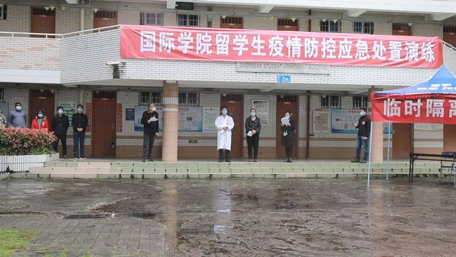 留学生疫情防控演练现场