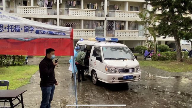 为进一步落实“四早”要求,提升我校留学生新冠肺炎疫情防控应急处置机制运行成效,3月28日下午,国际学院协同校医院在北区7号楼留学生公寓楼前空地举行“留学生新冠肺炎疫情应急处置演练”。学院党委书记张华英、院长吴锦程到场指导,校医院院长陈团生、国际学院党委副书记刘敏、留学生辅导员及校医院医生等工作人员参加了演练,国际学院全体辅导员及在校留学生到场观摩。