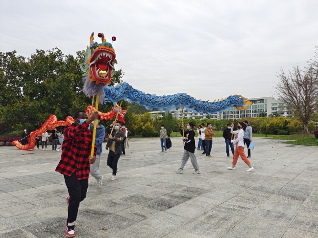 舞龙作为一项传统民俗文化技艺,其独特的表演形式充分展现了中华文化的博大精深。活动现场,舞龙舞狮协会成员展示了舞龙穿、腾、跃、戏、缠等动作和套路,将龙的精、气、神、韵等特点淋漓尽致的表现出来,中外学生们积极互动,亲身参与体验,深刻感受舞龙的文化精神,留学生莱恩表示:“这次活动给我留下了深刻的印象,在学习舞龙基本技巧的同时,让我充分体验中华传统文化的魅力。”