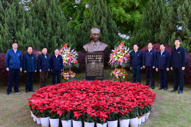 在博学楼广场五位先贤铜像前,兰思仁校长代表学校敬献花篮。校领导与五位先贤所在学院领导班子成员、师生代表肃立致敬,深切缅怀李来荣、卢浩然、周可涌、赵修复、张建国五位先贤为发展福建农业和福建高等农林教育改革所作出的重大贡献。