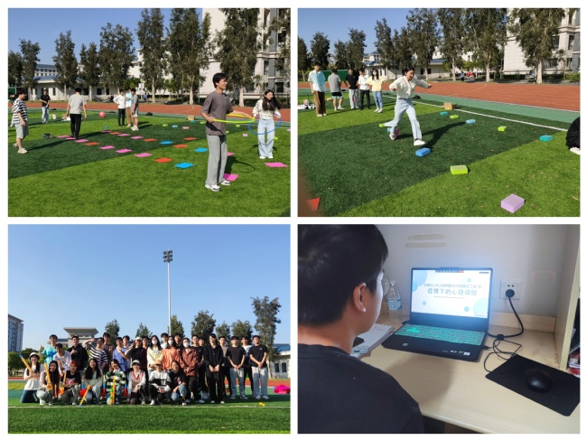 20物流1班将团体素质拓展活动与心理知识竞答相结合,通过同心鼓、两人三足指压板比赛、速度接力等项目增强团队合作能力和班级凝聚力,借助心理知识竞答环节普及心理健康知识,最后的水枪大战更是让同学们在互动中释放压力、放松身心。20交工2班注重在运动比拼中培养团队默契,通过跳长绳、指压板接力等经典团体项目比赛培育和谐融洽的班级氛围,引导同学们学会相互信任与包容。