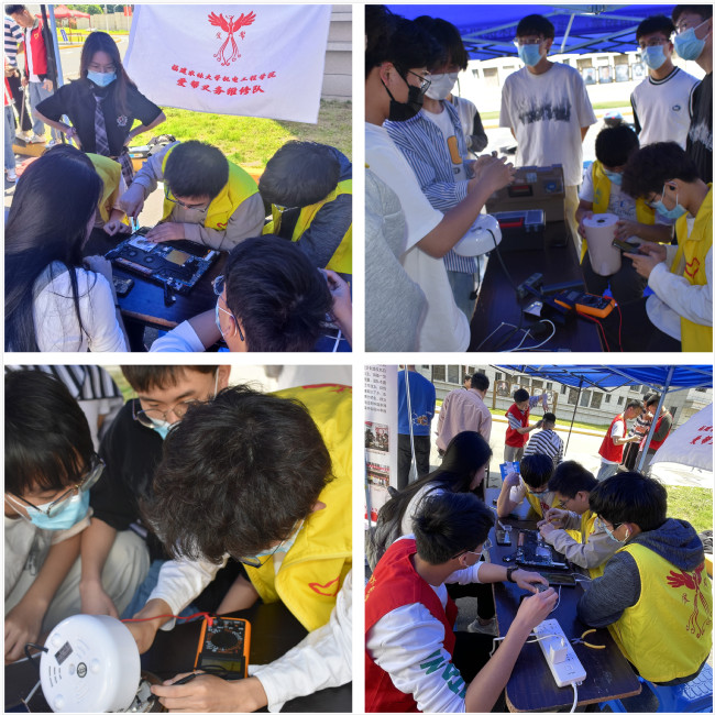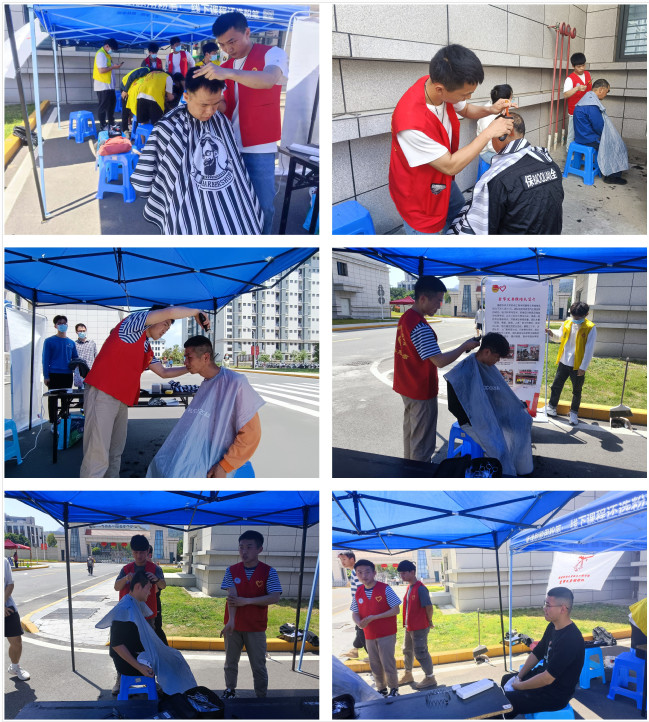 一把剪刀,一个发推,一把椅子,一条围裙,义剪理发服务就这样“开张了”。活动现场,志愿者们细心、耐心、认真地为师生员工们理发。随着剪刀“咔嚓咔嚓.……”声音的此起彼伏,一名名接受义剪服务的师生员工们剪出了清爽利落的新形象。雷同学说:“这次剪发活动真是一场及时雨,解决了我因疫情防控需要无法外出理发的问题。”另一边,“爱帮义务维修队”队员们也忙得热火朝天。“耳机线里面有条线断了能修吗?”“烧水壶不通电,能修吗?”“电吹风吹不了热风可以修吗?”队员十分热情地回答大家的提问,并为师生们提供义务维修服务。