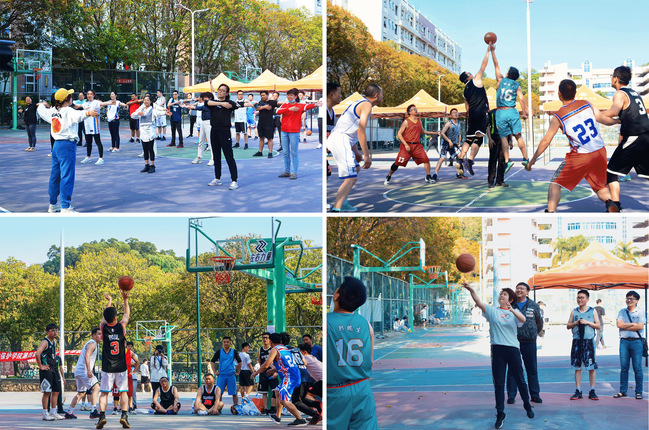比赛开始前,全体政工干部在校团委周颖华老师的带领下做起了集体热身操,在轻松愉悦的氛围中一同体验运动健身的快乐氛围。随后,参赛政工干部分为AB两队,分别进行了竞技组(篮球对抗赛)和后援组(定点投篮赛)的项目比拼。在竞技组比赛中,各学院辅导员轮番上场,各显身手,在一个多小时的对抗比拼中,赛出了风格水平,赛出了对于运动、对生活、对职业的热爱,赛出了辅导员队伍团结互助的精神面貌。在定点投篮比赛中,每一位上场的政工干部都在场外的支持和鼓励中投出了属于自己的一球,赢得了掌声和肯定。
