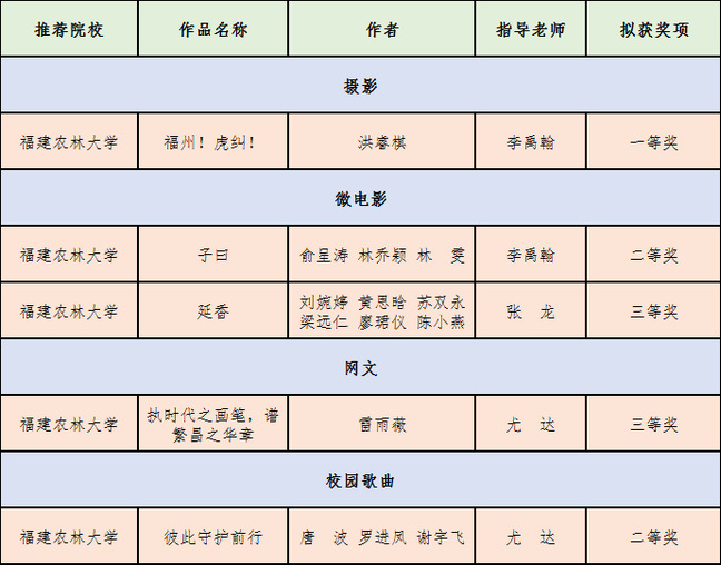 附 我校作品获奖名单: