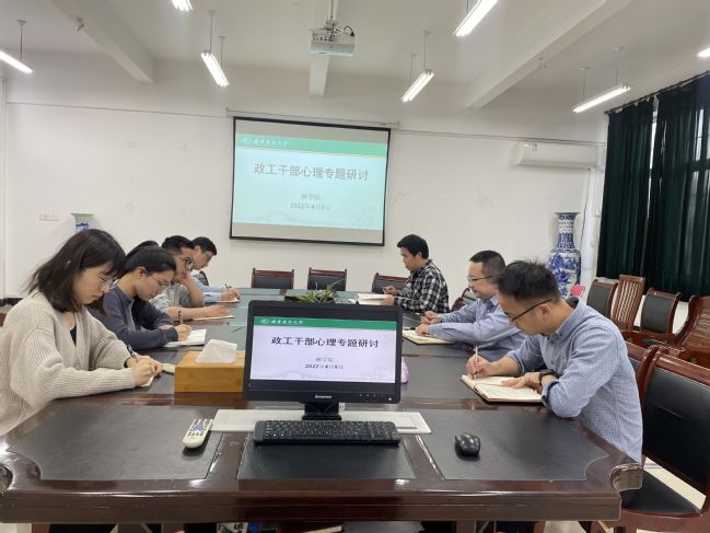 4月8日下午,林学院政工干部在诚A206召开疫情防控下心理专题交流会。学院党委副书记李梅生主持会议,全体辅导员参加会议。