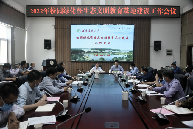 4月12日下午,我校在明德楼武夷厅召开校园绿化暨生态文明教育基地建设工作会议。校绿化委员会主任、校长兰思仁出席并讲话,校绿化委员会副主任、副校长林庆藩主持会议。省绿化委员会代表、校绿化委员会成员、各学院院长、校绿化委员会专家代表等参加会议。