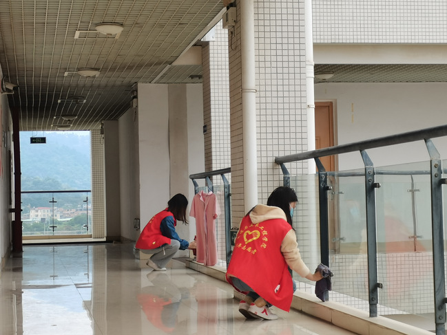 活动当天,志愿者前往负责区域,积极地开展清洁活动。对食堂窗户,楼梯扶手等多个地方进行重点清洁。大家各司其职,团结协作,有条不紊地打扫每一个可能藏污纳垢的角落,在给同学们一个健康整洁的环境的同时,用实际行动让校园焕然一新。