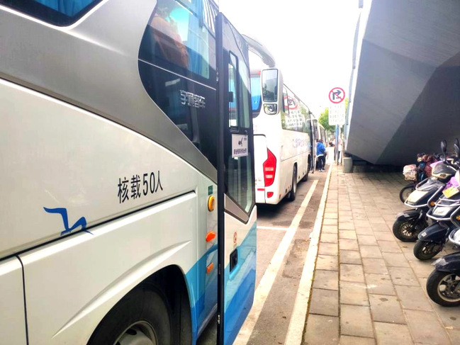 福建光大旅游汽车有限公司车队提前在金山校区西门门口有序等待