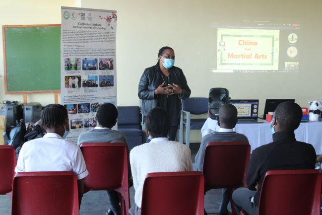 中华武术,作为国粹文化,是中国传统文化的精髓。体验武术,一直以来是当地民众最为喜爱的孔院文化推广活动。为了让当地青少年对中国武术有更为深入的了解,包括武术形式的多样性,功能性以及武术所蕴含的经脉理论、处世哲学等。孔院联合德班理工大学和德班威金斯高中(Wiggins High School)共同开展了武术体验进校园活动。本次中文日活动采用线上和线下结合的模式,为期两天,共有300多名学生参加。
