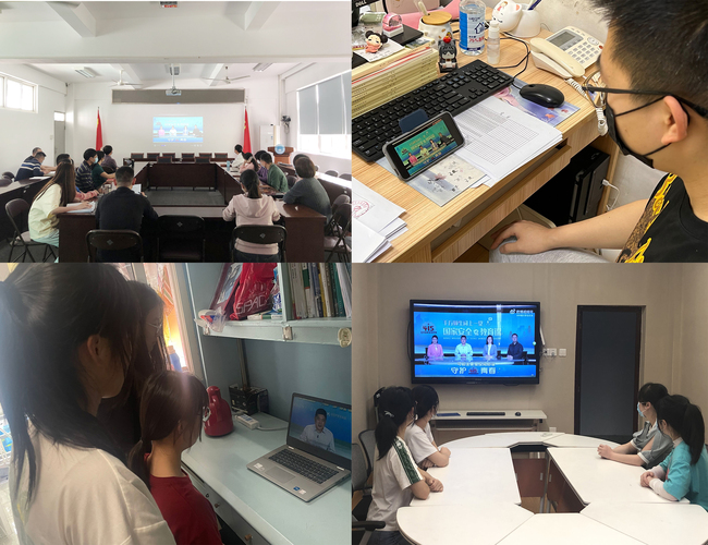 4月14日下午,组织师生在线学习收看教育部“千万师生同上一堂国家安全教育课”直播,并自当日起组织师生通过自主学习的方式,在线学习“国开大讲堂•国家安全教育公开课” 和“反邪教警示教育进校园”专题警示教育宣传片等,积极参与国家安全教育主题短视频线上接力活动及“微博#国家安全日#话题”互动。据悉,学校共有26366名学生参与全民国家安全教育日宣传教育线上重点活动;122名辅导员参与指导903个班级及165个学生党支部开展相关主题活动。学校报送的视频作品《“刑”啊,生活过得越来越有“判头”》获得省国家安全创意微视频大赛一等奖。