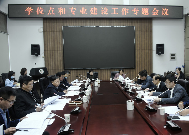 4月20日下午,校长兰思仁主持召开学位点和专业建设工作会议,专题研讨专业申报调整计划和学位点培育建设工作,副校长黄炎和、唐振鹏出席会议。
