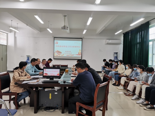 4月21日下午,林学院党委在诚A206召开2022年网络意识形态工作专题会议,学院党政领导班子成员、全体党支部书记及政工干部共计28人参加,院党委书记蓝天水主持会议。