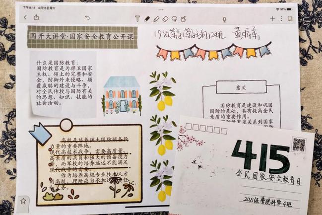各班级以收看《国开大讲堂·国家安全教育公开课》为契机开展主题讨论,通过制作学习卡片、发表心得体会等形式进一步深化教育成果。