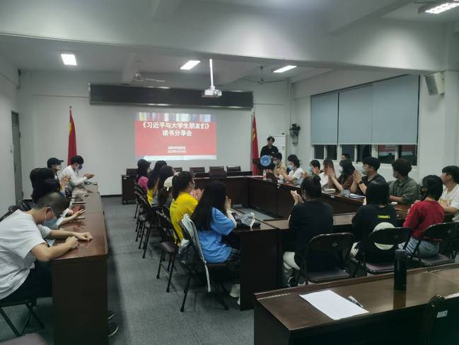 《习近平与大学生朋友们》作为深入学习习近平总书记关于青年工作的重要思想的鲜活读本,对做好新时代青年工作、助力当代青年健康成长具有重要示范意义。从四月中旬开始,同学们就对《习近平与大学生朋友们》进行学习并记录所思所想。分享会上,同学们再次共同研读了《习近平总书记致首届全民阅读大会举办的贺信精神》,交流对该书的阅读心得,并结合青年大学生的身份,畅想未来的奋斗方向。