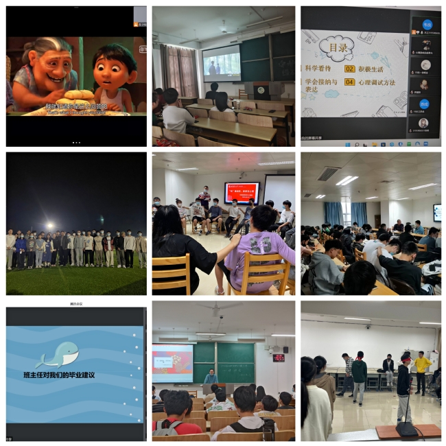 在辅导员、班主任的精心指导下,学生会心理健康部积极组织、有力推动,各班级围绕疫情防控、生命安全、卫生健康等内容开展了心理沙龙、心理知识讲解、心理素质拓展、心理观影等形式多样的心理主题班会。同学们或在心理沙龙活动中积极分享自己的心路历程,或在观影中开启一场心理疗愈和成长之旅,或在素质拓展活动中激发潜能、挑战自我。