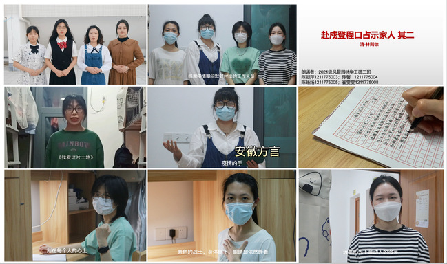 此次方言朗诵比赛以线上收集、评审的方式举行,通过方言朗诵的形式诵读抗疫主题诗歌或抒发家国情怀的古诗词。比赛征集到众多优秀作品,每份作品都紧扣“抗击疫情”或“爱国主义”的主题要求以视频演绎或音频配音的方式展现内容,涵盖了河北、山东、安徽、福建等多地方言,充分展示出同学们充沛饱满的情感与青春昂扬的精神面貌。经过专业评审,最终评选出一等奖1名,二等奖2名,三等奖3名,荣誉奖5名。
