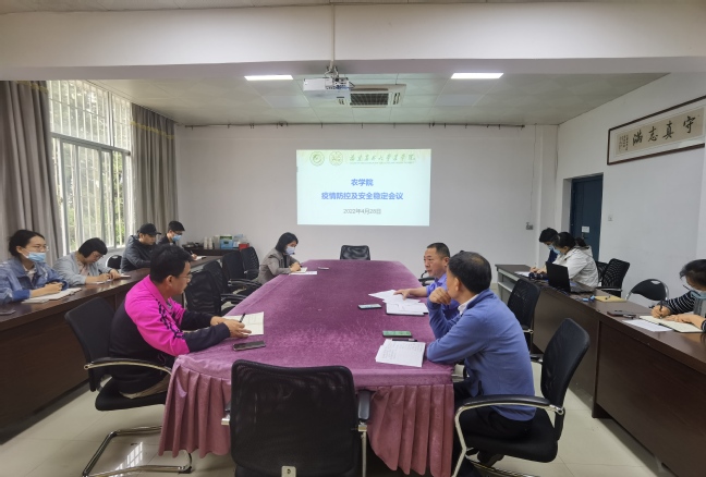 4月28日上午,农学院在三楼小会议室召开疫情防控及安全稳定会议。学院党委书记洪诚、院长曾任森、党委副书记林素文、副院长兰涛、各个系、所负责人、辅导员参加会议。