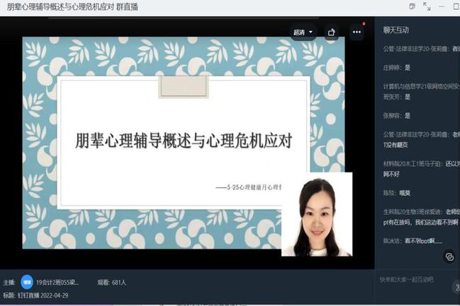 许琳玲通过分析几种疫情下常见的心理状态,建议广大同学规划好未来生活,主动适应环境变化,以“接纳、包容、适应”的态度面对生活,并分享了危机干预的方法。讲座结束后,同学们纷纷表示收益匪浅,在很大程度上排除了情绪上的困扰。