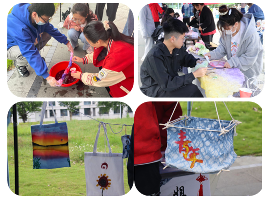 大赛分为两个部分,上午的“靛蓝染春秋”的环节,每支参赛队伍完成布料染整,同学们充分发挥想象力,将色彩渐变的浸染、风格规整的扎染活学活用在每一块染布上,有色彩鲜丽的泼墨作品,也有清丽脱俗的水墨风格。下午的“巧手扎锦绣”环节,参赛队员更是将创新能力发挥的淋漓尽致,色彩缤纷的染布被制作成独具风格的工艺品,表达了对五四爱国先辈舍生取义、慷慨救国的缅怀,对五四运动精神内涵、时代主题的深刻感悟,赢得了在场观众的好评。本次活动全程贯穿环保理念,采用环保型的植物染料和布袋。