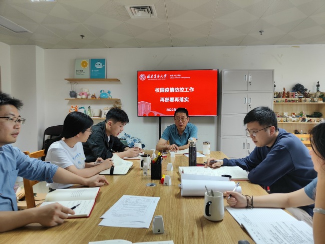 5月6日,材料工程学院在旗山校区综合楼206室召开疫情防控和安全稳定工作再部署再落实会,学习贯彻5月5日中央政治局常委会和福建省委常委会关于疫情防控工作部署会议精神,梳理总结前一阶段疫情防控工作的短板缺项,分析研判当前学生心理健康状况和影响安全稳定的因素,就做好下一阶段疫情防控和安全稳定工作再部署再落实。学院党委副书记苏开敏主持会议,全体政工干部参加会议。