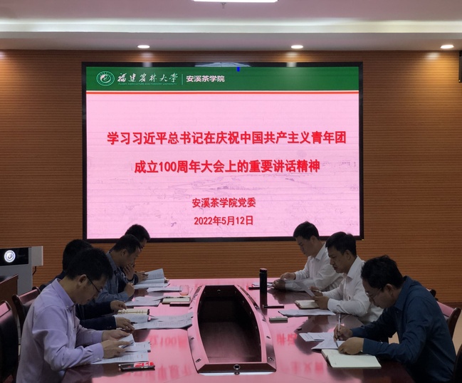 5月12日,安溪茶学院党委召开理论学习中心组学习会,专题学习贯彻习近平总书记在庆祝中国共产主义青年团成立100周年大会上的重要讲话精神,学院党委党委书记连文主持会议,中心组成员参加会议。