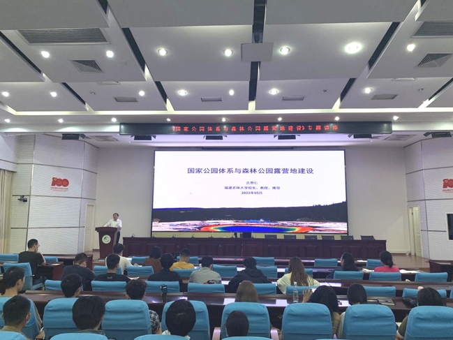 5月11日晚,校长兰思仁教授结合《景观学生态学》课程,在禧强楼学术报告厅为研究生开设题为“国家公园体系与森林公园露营地建设”的专题讲座,林学院、风景园林与艺术学院近300名研究生及部分教师参加。