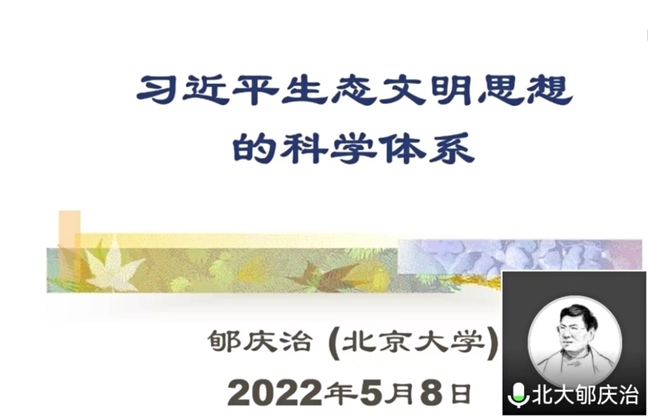 5月12日,北京大学马克思主义学院教授博导、习近平生态文明思想研究中心主任郇庆治受邀以线上的方式为我校师生开设题为《三大体系视角下的习近平生态文明思想研究》的讲座。此次讲座是开云网页版习近平生态文明思想研究院主办的面向全校师生的第一期讲座。讲座由经济管理学院副院长李坤明主持,研究院成员戴永务教授、谭文华教授,省社科研究基地马克思主义中国化研究中心副主任罗贤宇以及研究生、本科生近百人参与讲座。