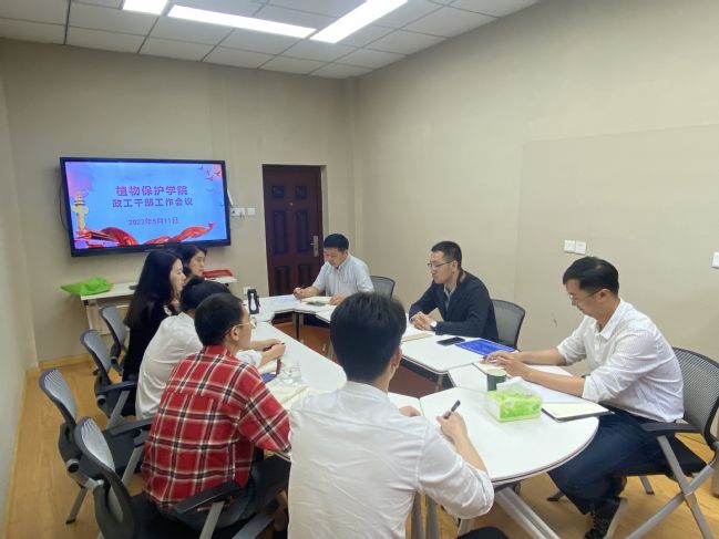 5月11日,植物保护学院党委书记林栋在博学楼706会议室主持召开政工干部会议,专题学习习近平总书记在庆祝中国共产主义青年团成立100周年大会上的重要讲话精神,与会人员逐一分享学习体会。