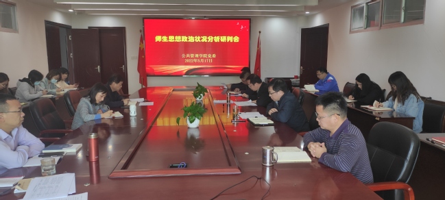 5月17日,公共管理学院党委书记曾起郁主持召开2022年度师生思想政治状况分析研判会。学院党委班子成员、教工党支部书记、系主任、科级干部、辅导员参加会议。