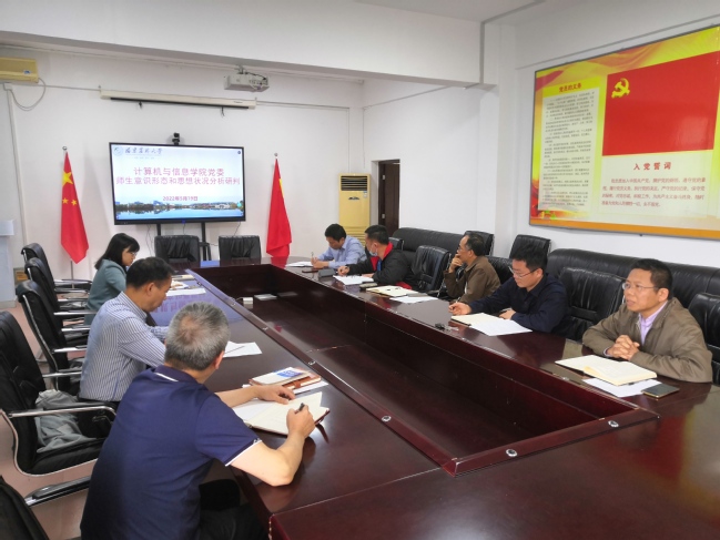 5月19日上午,计算机与信息学院党委在学院302会议室召开安全稳定与意识形态工作分析研判会。学院领导班子和党委委员参加会议,会议由学院党委书记钟一文主持。