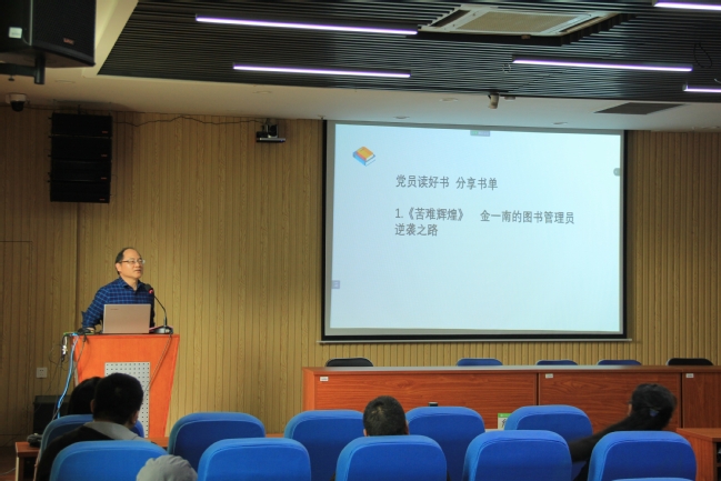 陈文滨对本次分享会进行点评,他指出图书馆党委组织开展的党员读好书分享会很有现实意义,希望基层党组织能持续开展形式多样、内容丰富的读好书活动,让更多人参与到读好书活动中。