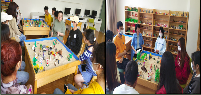 在沙盘游戏活动环节,同学们将自己精心挑选的沙具向沙盘内摆放,共同创作沙盘作品,作品完成后,大家围坐在沙盘周围,分享了自己摆放沙具的想法。活动中,指导老师对同学们摆放的沙具进行了耐心细致的点评。经过分享与点评,每一位学生都敞开心扉,与其他同学进行了真诚的交流,展示出了最真实的自我。活动结束后,同学们纷纷表达了自己的感受。