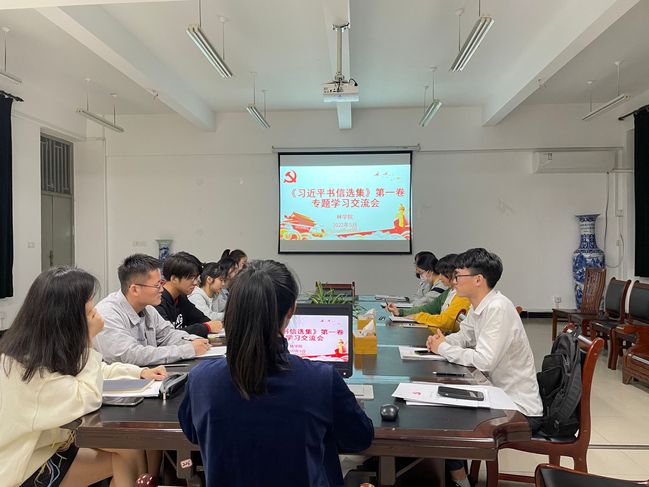 近日,林学院组织师生开展《习近平书信选集》第一卷专题学习,教师代表、团学干部代表于5月20日上午,在诚A206集中研讨交流。《习近平书信选集》第一卷反映了习近平总书记领导全国各族人民推进党和国家事业的实践活动,记录了习近平总书记同各族各界干部群众、各国政党政要和各界人士的交往,与会师生积极交流发言,互相交流学习体会。