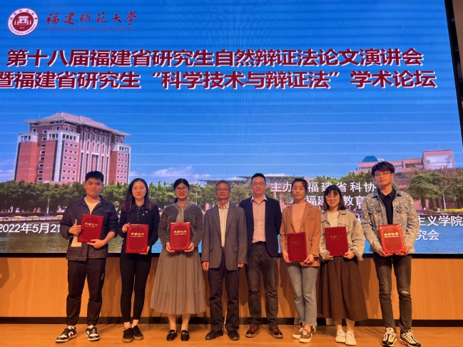5月21日—5月22日,由福建省教育厅与福建省科协主办、福建省自然辩证法研究会与福建师范大学马克思主义学院承办,以“科学技术与辩证法”为主题的第十八届福建省自然辩证法论文演讲会在福建中医药大学国际中医药培训中心举行。我校选派马克思主义学院5名研究生在比赛中全部获奖。其中邓雨葭和于瑞阁2位同学获得一等奖,程瑞、陈姝洁和王雪薇等3位同学获得三等奖。马克思主义学院邓龙九老师荣获“优秀指导老师”称号,我校被省教育厅、省科协授予“优秀组织奖”。