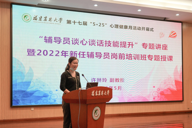 开幕式后举行“辅导员谈心谈话技能提升”专题讲座,福州大学心理健康教育中心副主任许琳玲副教授应邀主讲。许琳玲从谈心谈话技能、评估与帮扶三个方面,结合实际工作案例,深入浅出地讲解了辅导员在心理健康教育工作中的应学习掌握的技能技巧,帮助辅导员提升谈心谈话和对学生的教育引导能力。