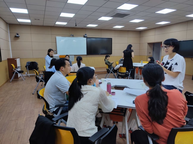 培训活动现场,各组学员深度参与了立体表达与讲故事的体验练习,并对体验练习进行反思和交流。参与工作坊老师纷纷表示要将所学框架与方法更好地应用于教学实践中,有效迁移到课堂教学中,做到真正的转化。