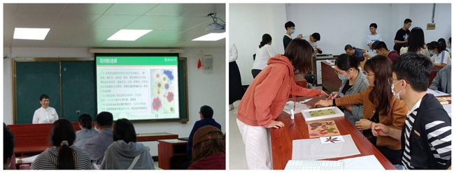 何碧珠教授介绍了压花的由来、制作等知识,希望本次发展对象培训班学员们可以将党性融入到自己的专业中,做到无时无刻爱党,时时刻刻敬业。