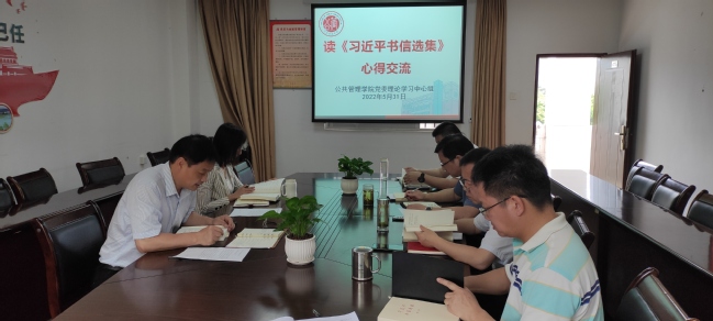 5月31日,公共管理学院党委书记曾起郁主持召开理论学习中心组读书会,交流分享读《习近平书信选集》第一卷的心得体会,并重点研学习近平总书记给南京大学留学归国青年学者的重要回信精神。