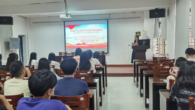 宣讲会上,陈萍老师带领大家重温了习近平总书记在庆祝中国共产主义青年团成立100周年大会上的重要讲话精神,共同回顾了100年来中国共青团坚定不移听党话、跟党走的青春历程。我校马克思主义学院2020级硕士研究生、星火党支部书记王雪薇和马克思主义学院2020级硕士研究生、新青年党支部书记覃诗涵两位同学与大家共同探讨交流了中国共青团百年历程的经验和启示。宣讲引用大量生动详实的案例,为在场青年学生上了一堂生动的思政课。大家纷纷表示,要牢记总书记的殷殷嘱托,坚定不移跟党走,将“小我”融入“大我”,唱响“青春心向党、建功新时代”的主旋律,争当伟大理想的追梦人,争做伟大事业的生力军,在青春的赛道上奋力奔跑,跑出新时代青年最好的成绩。