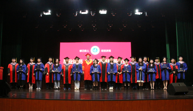 在毕业典礼最激动人心的学位授予仪式上,院领导和系主任为毕业生一一拨穗正冠、颁发证书,合影留念。