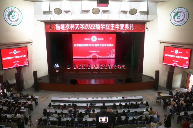 典礼上,张开晃宣读2022届校优秀毕业生名单,毕业生代表2019级农村发展专业周凌晨诺与2018级文化产业管理专业黄瑜萍发言,周凌晨诺在讲话中感谢学校的辛苦培育、老师的谆谆教诲,并表示作为农林人、经管学子将始终不忘初心,志存高远,脚踏实地,砥砺奋进;黄瑜萍表示四年青春承载着的不仅是美好的记忆,更是在“修己安人,经世济民”的教育下,努力在实现中华民族伟大复兴的赛道上跑出最好成绩。在校生代表2019级工商管理专业蔡家豪与教师代表郑旭媛老师衷心祝福毕业生们一帆风顺,前程似锦,历经千帆,归来仍是少年郎!