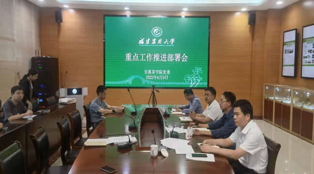 6月9日上午,安溪茶学院党委召开重点工作推进部署会,学院党委书记连文主持会议,学院领导班子成员、科级干部、党支部书记参加会议。