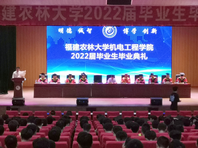 6月10日,机电工程学院在旗山校区大报告厅举行2022届毕业生毕业典礼暨学位授予仪式。学院党委副书记(主持工作)修新田,院长叶大鹏,副书记曹滨斌,副院长郑书河、魏萱,各系主任,各年级辅导员,全体毕业生及校友代表参加典礼。典礼由曹滨斌主持。
