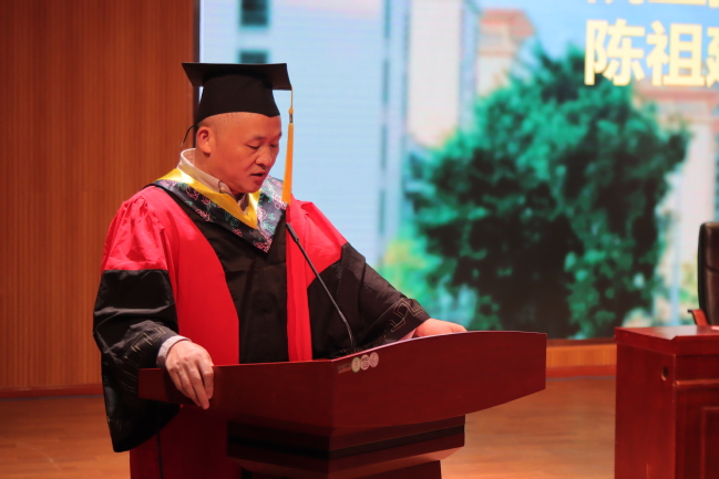 陈祖建在致辞中对毕业生们表示热烈的祝贺和真挚的祝福,鼓励毕业生们在人生进入新阶段之际,要做一个志存高远、脚踏实地的人;做一个豁达开朗、善于合作的人;做一个意志坚强、敢于担当的人,希望他们踔厉奋发、笃行不怠,以实际行动和优异成绩迎接党的二十大胜利召开!