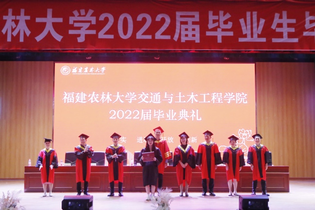 毕业典礼现场,学院学位委员会成员为交通与土木工程学院2022届全体毕业生拨穗正冠、颁发证书,并合影留念。毕业典礼结束后,全场老师起立鼓掌,目送学生离场再出发。