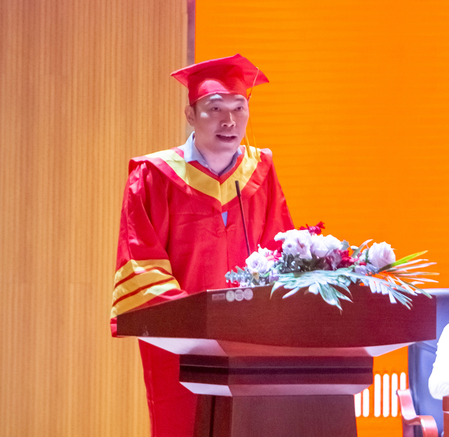 教师代表付腾飞寄语毕业生,要注重个人体验和成长,走出校园后也要勇敢去追求梦想,努力找到生命中的激情,发挥最大的能量,让自己拥有足够的勇气和决心去面对未来道路上的崎岖坎坷。