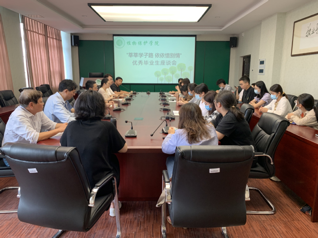 6月10日下午,植物保护学院党委主要负责人、关工委老教师、毕业班班主任等与优秀毕业生召开座谈会,共话师生情谊。座谈会以“莘莘学子路,依依惜别情”为主线,为毕业搭建温馨的离校氛围,促进学生温暖离校。学院党委书记林栋、副书记陈文滨、关工委老教师黄建、毕业班班主任代表刘国坤和郑璐平、全体辅导员及优秀毕业生代表参加会议。