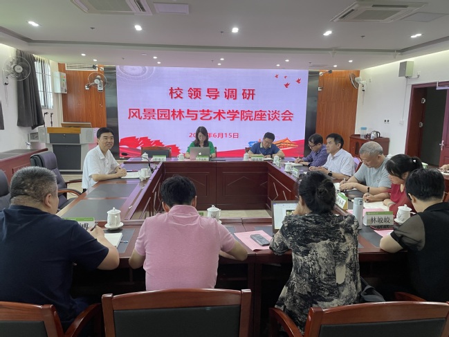 6月14日-16日,副校长林庆藩分别到园艺学院、林学院、风景园林与艺术学院调研,召开座谈交流会,倾听学院关于高质量办学的意见建议,并实地查看学院文化长廊、创意美育活动成果展、乡村振兴实践成果展。园艺学院、林学院、风景园林与艺术学院党政班子成员、系主任、科室负责人及骨干教师代表参加座谈调研。