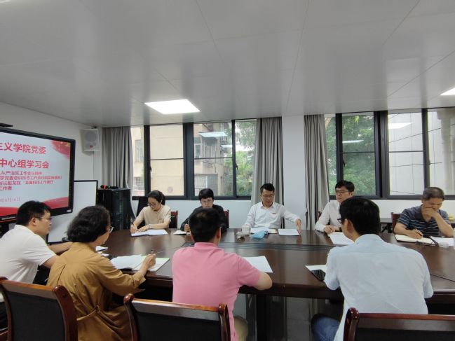 6月16日下午,马克思主义学院党委理论学习中心组在314会议室召开学习会,学习贯彻学校全面从严治党工作会议精神和意识形态工作责任制的有关文件。学院党委理论学习中心组成员、科级干部参加学习会议。