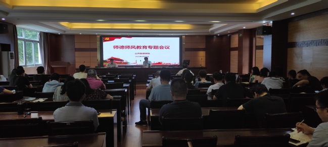 6月22日,公共管理学院党委书记曾起郁主持召开学院师德师风教育专题会议,将政策学习宣讲与通报典型案例相结合开展警示教育。学院全体教职工参加会议。